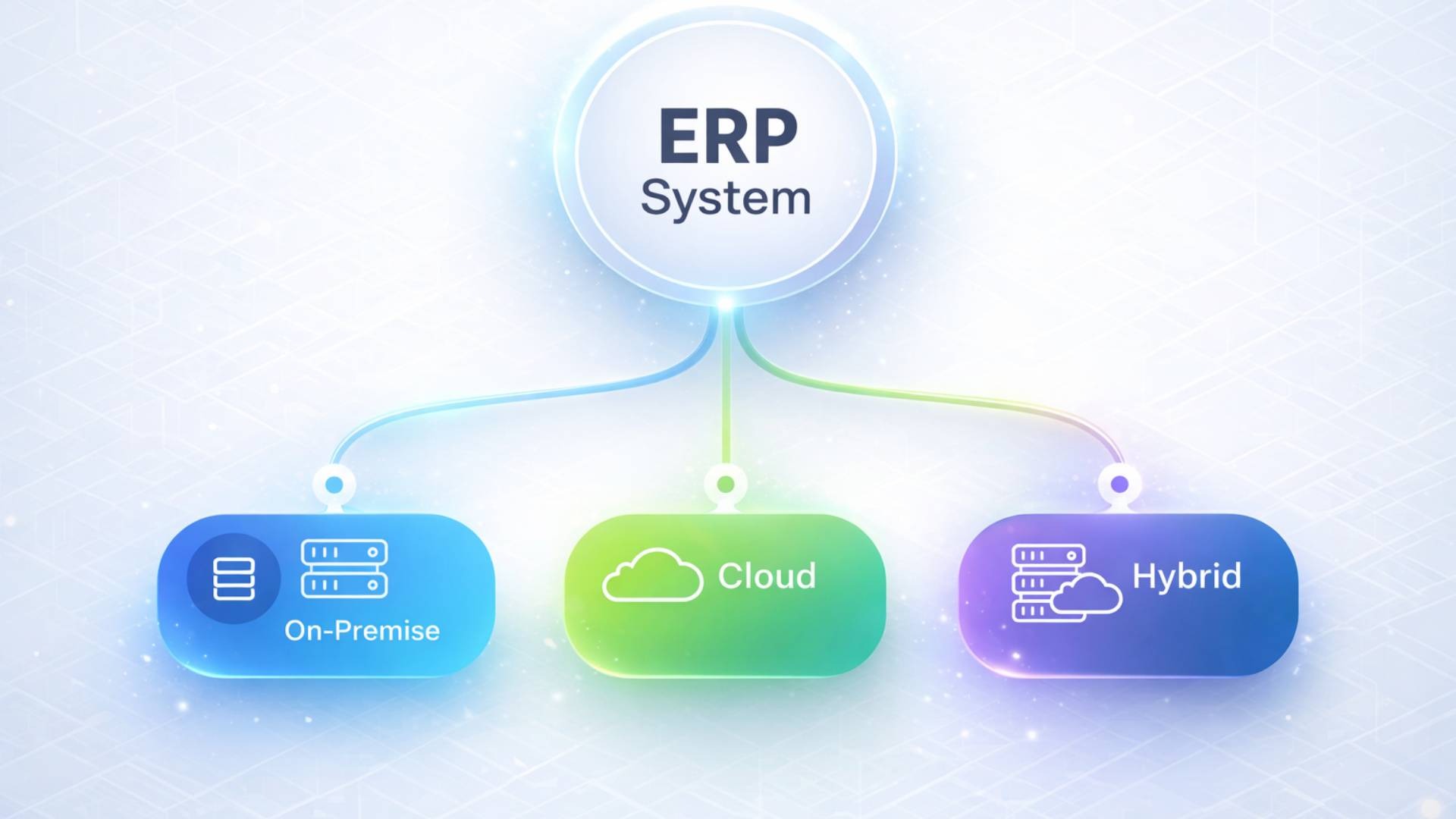 Hybrid ERP combines both on-premise and cloud ERP systems. It allows companies to keep sensitive data in-house while using cloud features for flexibility and scalability.